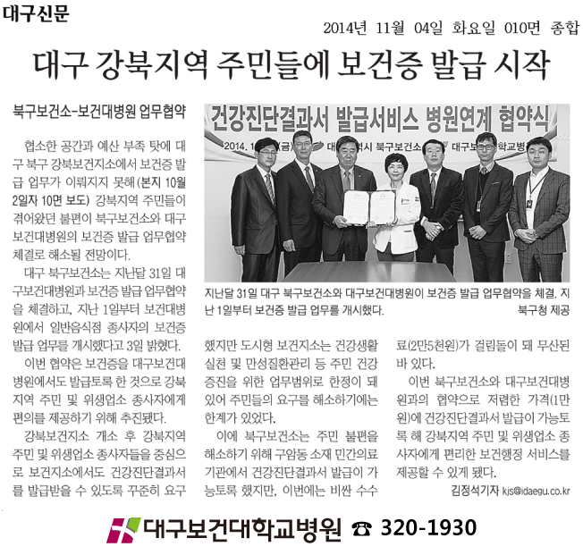 대구시 북구보건소-대구보건대병원 업무협약 및 보건증 발급